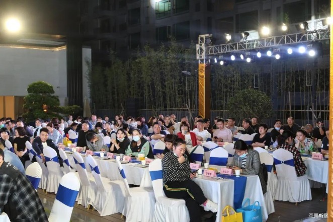 经销商晚宴当日晚6时许,以【乘“圣”跨越】为主题的,尊龙时凯集团第45届国际家具展接待晚宴暨2020年度优秀经销商颁奖盛典,在营销中心四楼景观花园隆重举行,来自全国各地的经销商朋友欢聚一堂,共同分享一场精彩纷呈的晚宴。