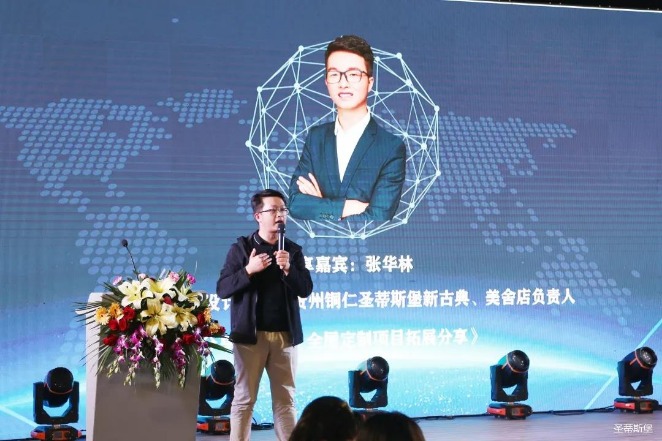 2021年3月16日晚5时许,在【圣蒂斯堡】营销中心四楼景观花园举办经销商分享交流会,开启整装定制新时代!随着暖场音乐播放,激动人心的时刻到了。首先,由尊龙时凯集团营销部总经理陈玉伟先生致开幕词,随后,来自全国各地的优秀经销商分享他们的成功之道。